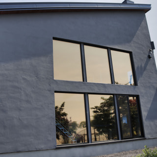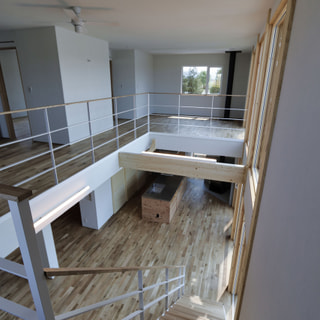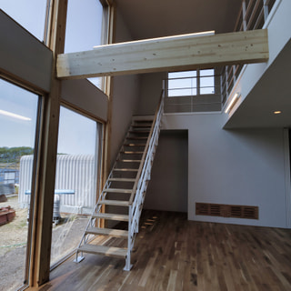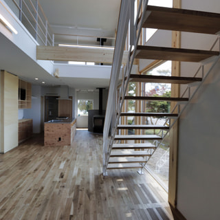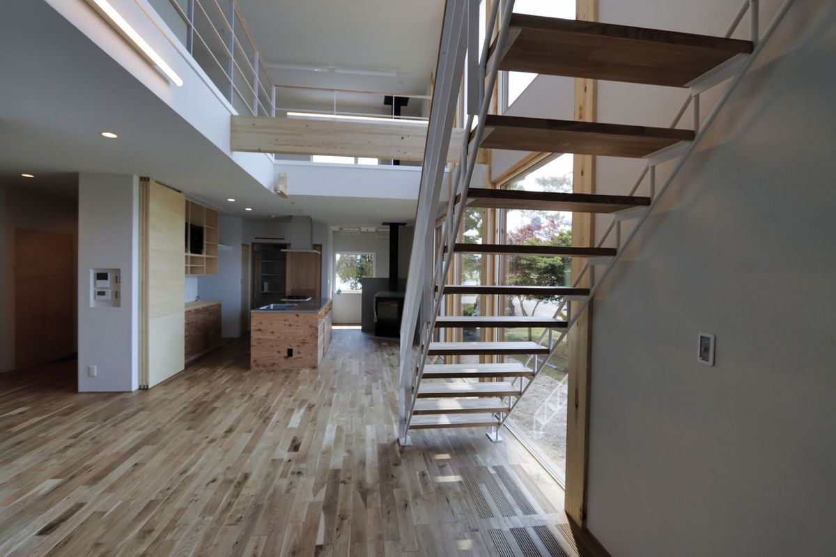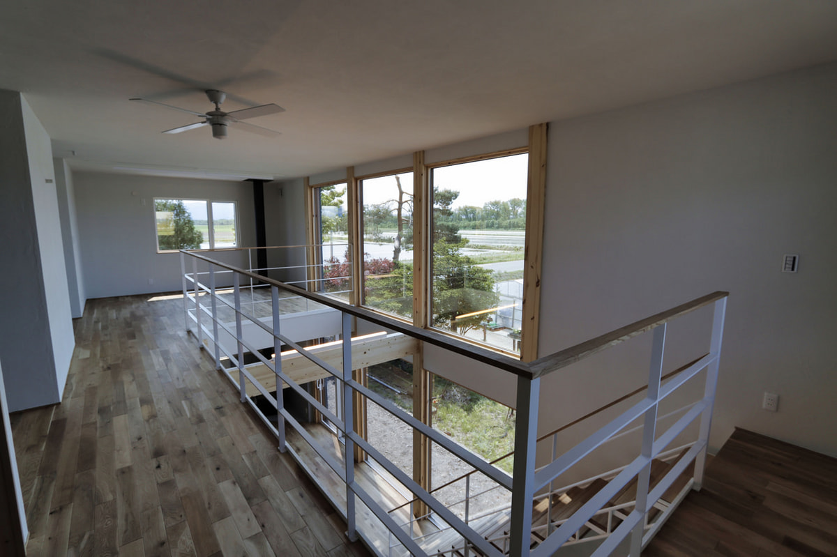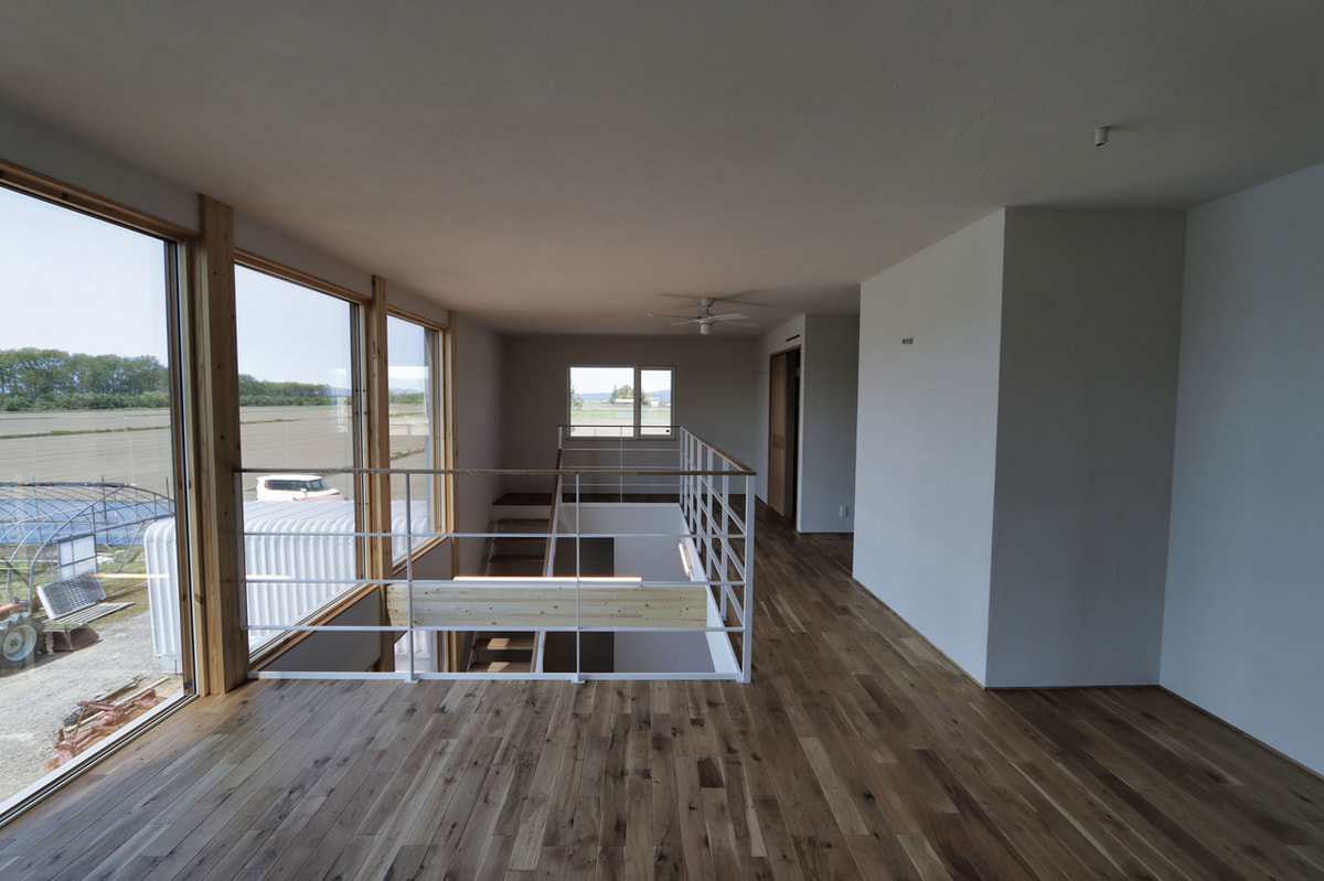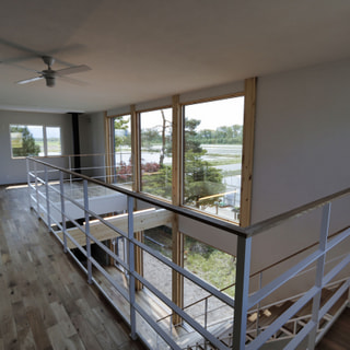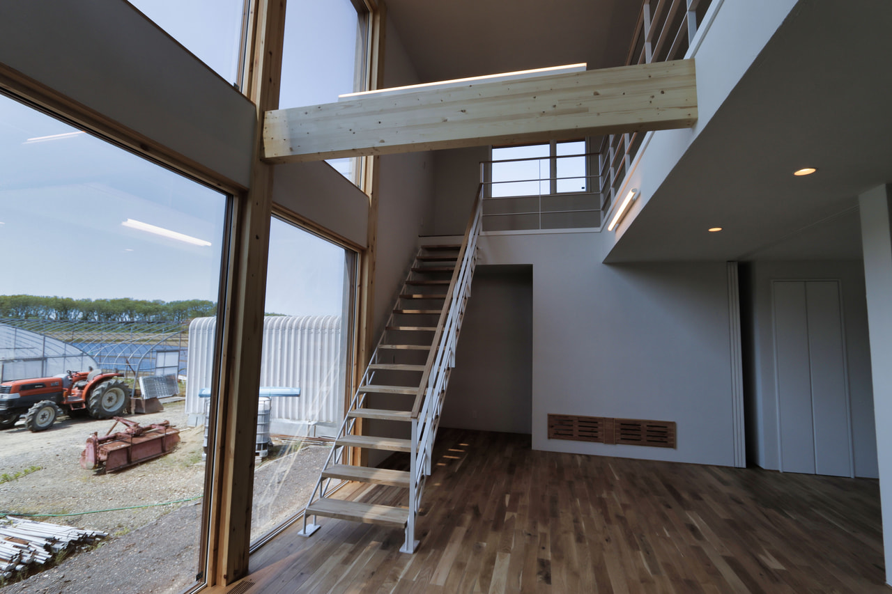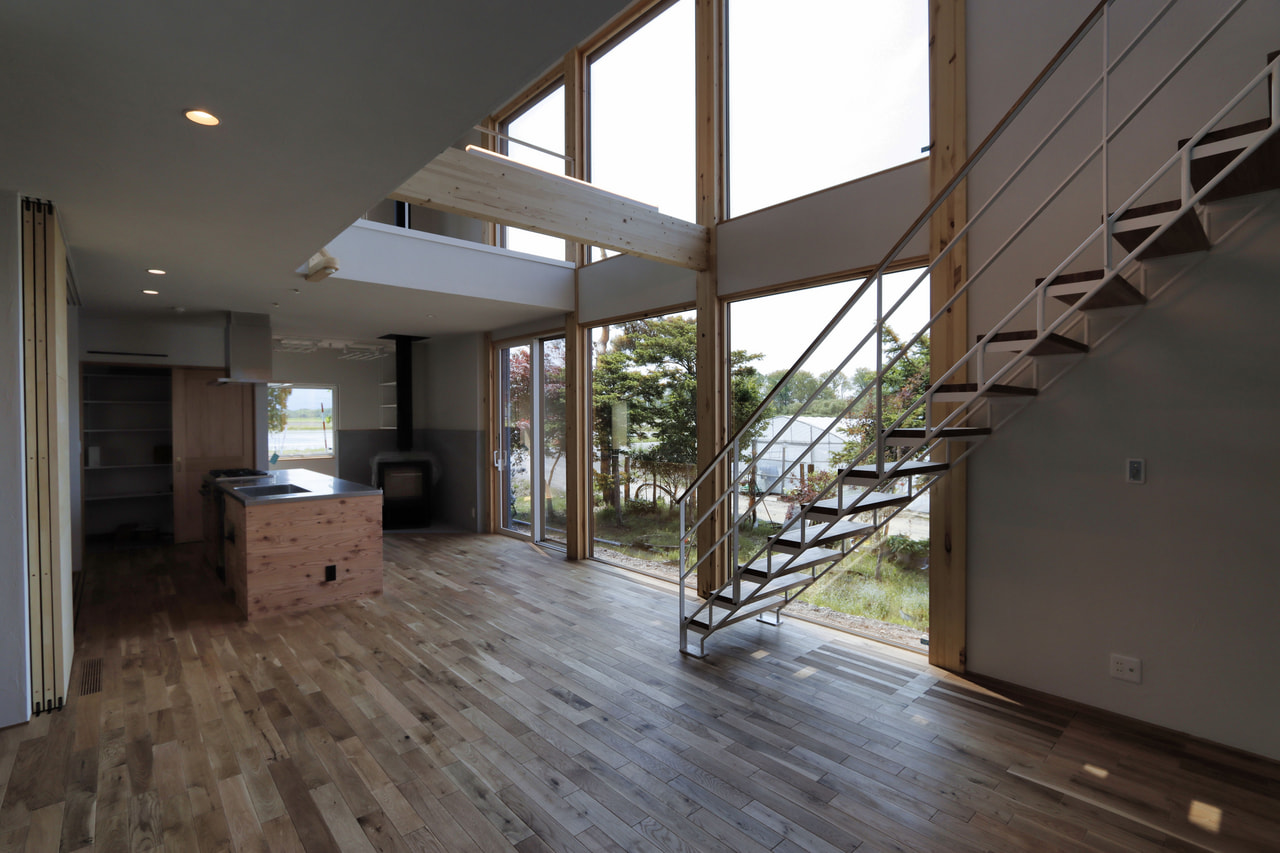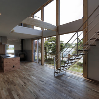 大空間の吹抜けと星空が見える連続窓